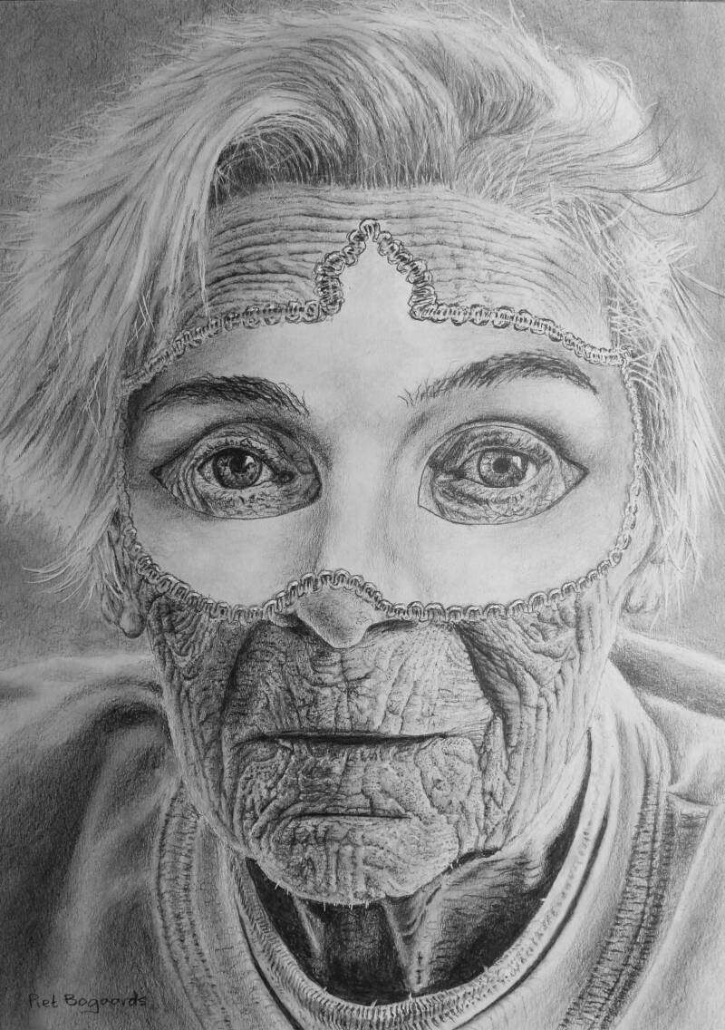 Potlood op A3, naar een foto van Shezana van Büdingen.
